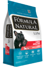 Farinha de carne e ossos de bovino, farinha de vísceras de aves, milho moído, farelo de trigo, farelo de soja, óleo de aves, hidrolisado de fígado de aves e suíno, cloreto de sódio, polpa de beterraba, grão de linhaça, maçã desidratada, vegetais desidratados (cenoura e espinafre), inulina, parede celular de levedura, extrato de yucca, vitaminas, minerais, ácido propiônico, BHA (Butilhidroxianisol) e BHT (Butilhidroxitolueno).